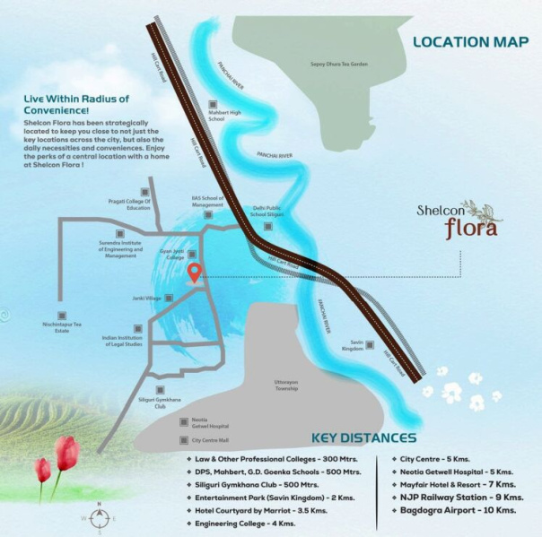 Some popular transit points closest to Shelcon Flora Dagapur, Siliguri are Matigara railway station, Siliguri junction railway station and West Bengal bus station. Out of this, Matigara railway station is the nearest from this location.